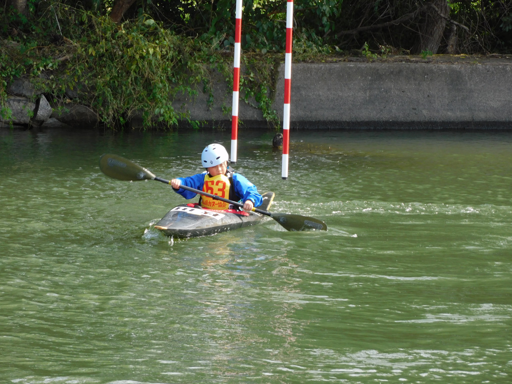 勢いよく、かつ冷静に漕ぎ出し、順調なスタート。途中、13番ゲート付近でペナルティがあったものの、最後まで一生懸命に漕ぎ切りました!